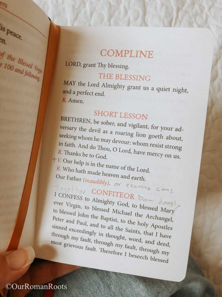 • Compline (before bed, approx. 7pm-10pm)