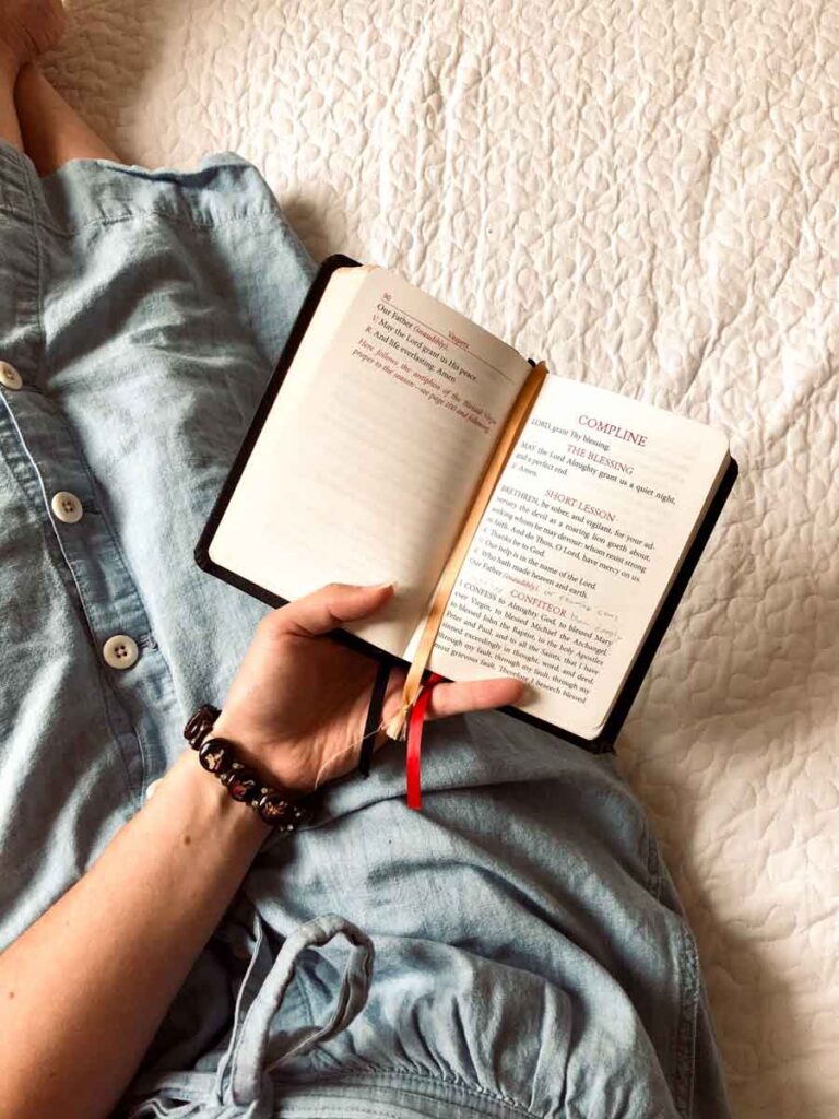 You’ll note that I give the times in intervals. That’s because the times are approximate and can vary based on the sun—as is the case especially with Lauds and Compline—or on your station in life. If you “miss” an hour, say because your toddler breaks a glass in the kitchen or you got an urgent call from your boss, it is better to pray that hour a little late in the interval than not at all.
